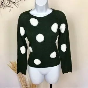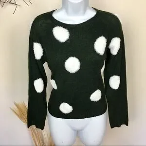 GREEN and white polka dot sweater. LUMIERE