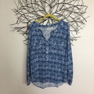 Soft viscose spandex blend boho snap button down shirt in a 1X. Two functional front pockets