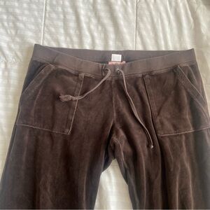 Vintage Juicy Couture brown low rise sweatpants. Size large. Flared pants. Slight discoloration shown in the last picture.