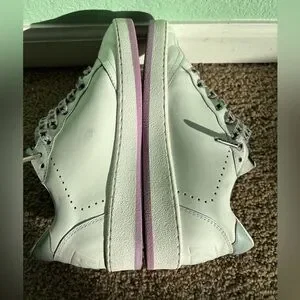 Leather upper suede star leather in colors white/ancient and pink/aqua. Size 35 (I wear a size 6.5 and these were just a half size too small). Measurement of inner sole is 9.25” I also bought star laces for them and you can get them and the original grey laces as well as dust bag, original receipt, and original box.