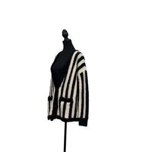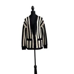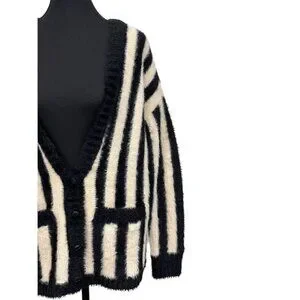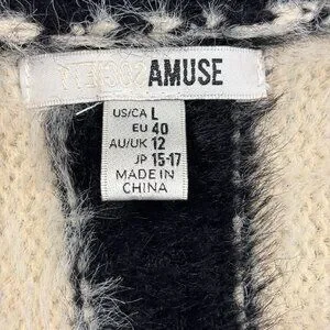 Society Amuse Black & White Fuzzy Angora Sweater | Large