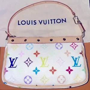 Authentic Louis Vuitton x Murakami Multicolor Pochette White NEW RE-LEATHER!