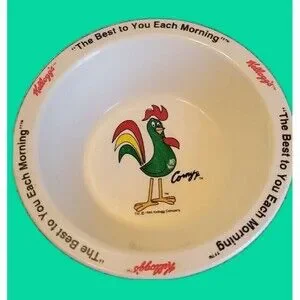 Add some retro charm to your breakfast routine with this vintage Kellogg's Corn Flakes cereal bowl from 1995. Featuring the iconic character Corny, this bowl is a must-have for any cereal collector or fan of vintage advertising. Made by Kellogg's, this bowl is perfect for enjoying your morning cereal or displaying as a nostalgic piece.