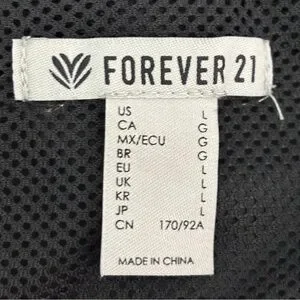 This is a colorful Forever 21 Racing Windbreaker jacket for women in size L. It features a checkered pattern in black and red, with a hood and elastic waist. The jacket has a half-zip closure, long sleeves, and is made of lightweight polyester. It is suitable for travel, parties, or casual wear, and is designed for various seasons like winter, summer, fall, and spring.