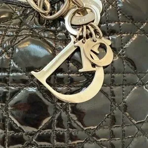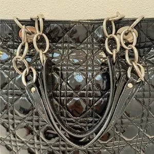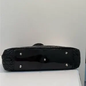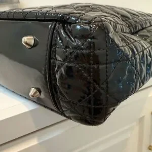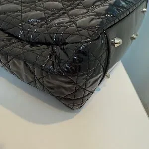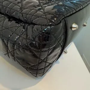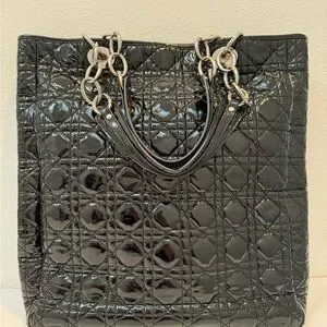 Authentic Christian Dior Patent Lady Dior Soft Black Cannage Shopping Tote Bag