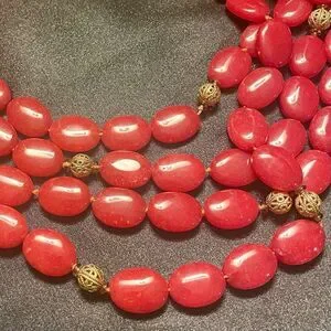 🏖️SOLD🏖️ Coral Five Strand Vintage Necklace with Gold Filagree Beads