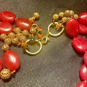 Vintage Deep Red Coral Five Strand Necklace with Gold Filagree Beads