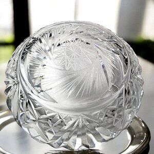 Bohemian Cut Crystal Heavy Ashtray-Exquisite Czech Pinwheel Swirl & Star Design