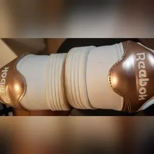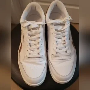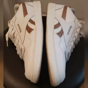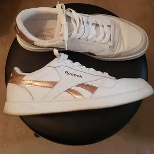 EUC white & rose gold/blush tone Reebok court W (sz 10)
