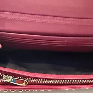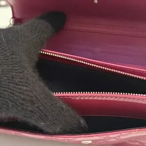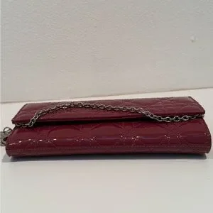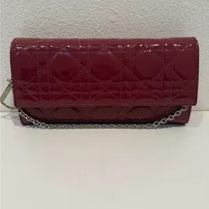 Authentic Christian Lady Dior Fuchsia Patent Leather Cannage Rendezvous Wallet Chain WOC