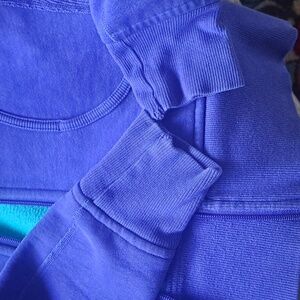 Beautiful purple and aqua women's junior's Lululemon Scuba full zip hoodie! Size 4. Very nice, very thick. Please examine all pics to view the two small holes on the wrist area.