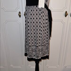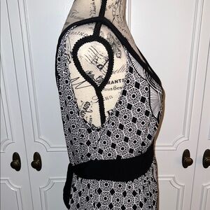 Elegant sleeveless dress. Features a flattering V-neckline and a fitted waist with tie back. Perfect for special occasions.