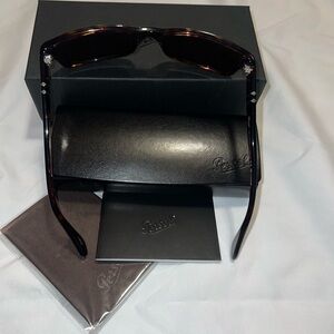 Brand new, never worn Persol sunglasses. Polarized glass lens technology. Gorgeous dark tortoise frame. With original box and cleaning cloth.