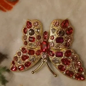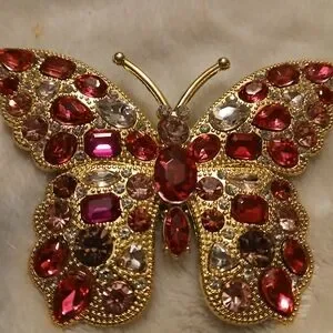 NWOT Large Butterfly Brooch with Pink and Red Gemstone Detailing