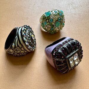 Enameled Crystal Cocktail Statement Vintage Ring Size 9