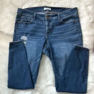 LOFT distressed Modern Skinny jean in excellent condition. Medium-blue wash with subtle fading throughout. Traditional 5-pocket styling. Zip fly with button closure. Rise is about 10,” inseam is approximately 28,” waist is about 36.” 91% cotton, 7% poly, 2% Elastane. Size 16.