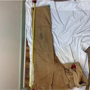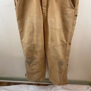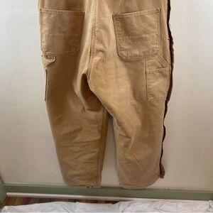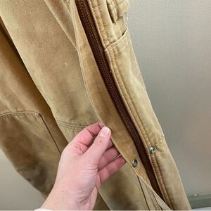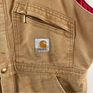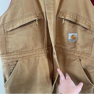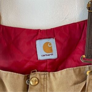 Carhartt duck insulated overalls with red lining. Winter essential! Features sturdy straps and secure buttons. Not sure of size no tag - please review pics. GUC
