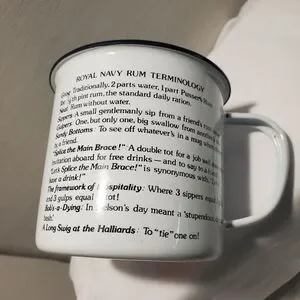 Pusser's Rum British Navy Promotional Enameled Mug Good to The Last Drop Flags