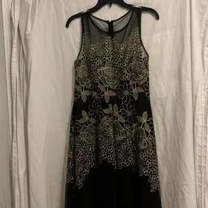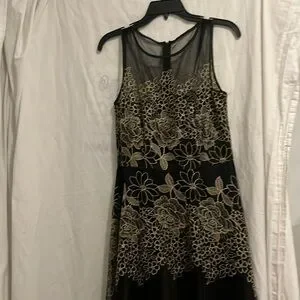 Work once - Tahiri Size 8 - Party Dress. Black shift on with Black / Gold lace overlay