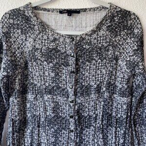 Maje Button Down Shirtdress Small Black & Gray Metallic Accents