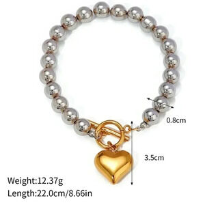 *NEW* 18K Gold Plated Stainless Steel Two Tone Toggle Bracelet & Heart Pendant
