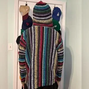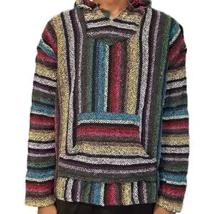 Mexican Baja Jacket Beach Surfer Pullover Hoodie (Drug Rug) Size Medium