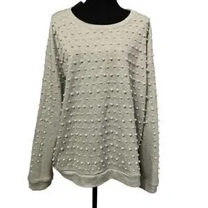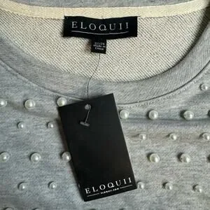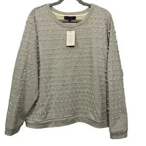 Eloquii Women's Pearl Embellished Heather Gray Sweatshirt NWT Size 22/24
