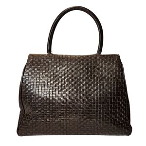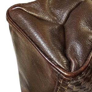 This is a beautiful vintage woven leather bag made by Fendi. It's in wonderful condition, especially for its age. The exterior is in very nice shape. There are a few scuffs on the very bottom from everyday use. They are light and not very noticeable (see photo). There is tarnishing on the hardware (see photos). All of the zippers, snaps, and buckles work perfectly. The interior is very clean and free of odor. There is a very small tear in the corner where the flap bends (see photo). There is also one spot where the interior is just barely fraying near to the top (see photo). Both of these flaws are hard to notice unless you are really looking for them. Overall, this is a stunning bag and rarely seen up for sale. The quality standards when these vintage bags were made are amazing and stand the test of time. There is a non-Fendi dust bag included for storage. Offers are highly encouraged. Thank you for looking.