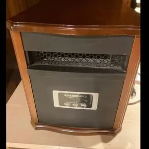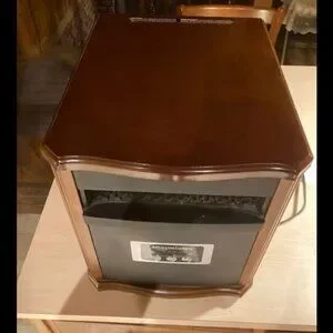 excellent condition works perfectly Energy-Saving ECO-Smart Setting, 1500W, Brown, 12"D x 13"W x 16"H Elegant wood finish portable space heater with adjustable electronic thermostat and easy-to-read LED display (measures 13 x 12 x 16 inches; weighs 23.5 pounds)