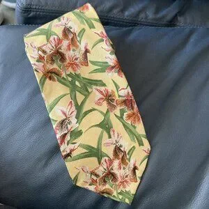 Vintage Floral Print Sopan Silk Tie Handmade Yellow Bird Of Paradise? I think lol