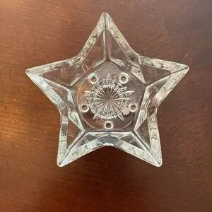 Set of 4, Elegant star-shaped taper candle holders. Perfect for adding a touch of sparkle to any setting. In very good used condition.