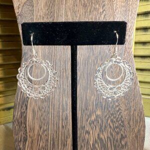 Filigree Sterling 925 Dangle Earrings, 1.5" x 1", sterling french hooks, 7.1g total weight for the pair, excellent condition, XP