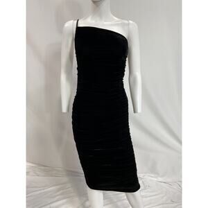 Lovers And Friends 'Milwood' Black Midi Dress Size XS: unlined, pull-on styling, ruched detail throughout, velvet fabric.