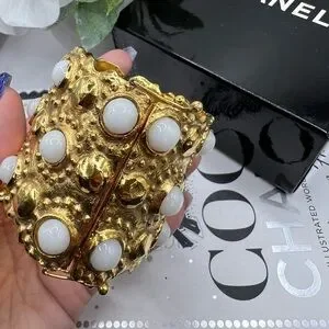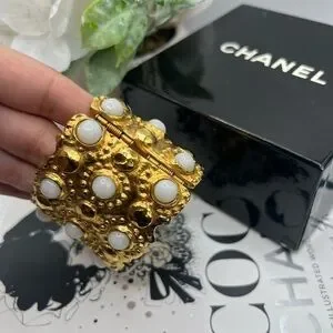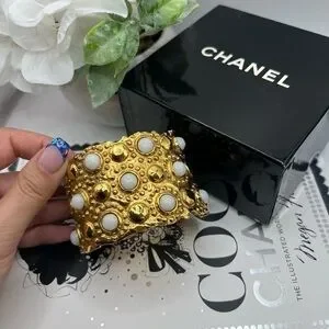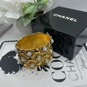 CHANEL Rare Vintage Gold Hinged Bracelet