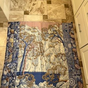Hermes Silk Sieste Au Paradis Shawl 140 Bleu Glacier Vieux