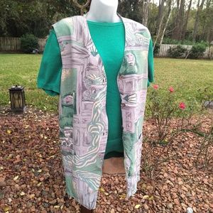 Vintage 100% silk long vest by August Silk. Soft colors. Very interesting piece!