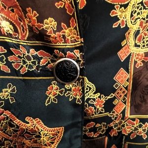 Beautiful vintage jacket by Kensignton Square in warm, rich colors. Lightweight and lined. Fabric content tag is faded, but appears to be polyester. No other signs of fading, damage or wear.
