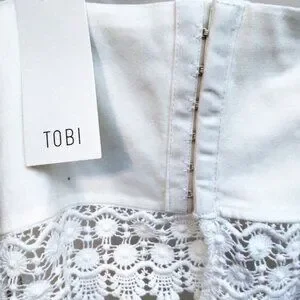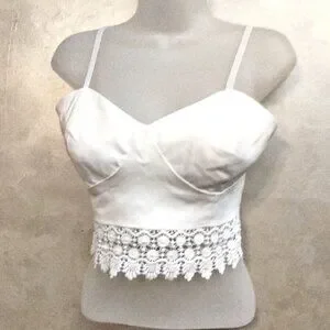 Gorgeous bustier cami by Tobi in soft white! Beautiful high quality lace trim. Adjustable straps.