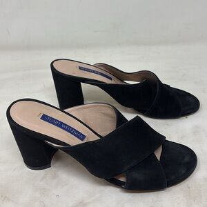 Stuart Weitzman Black Criss Cross suede heeled sandals