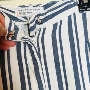 Waverly Grey Pants w Pockets 10 Blue White Stripe Wide Leg Casual Cropped Rayon