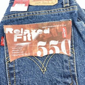 The Levi's 550 Denim Jeans are designed for boys in a size 14 Slim Relaxed Fit (25x27) with a Straight leg style. The jeans feature a Medium wash fabric color, making them versatile for everyday wear. The Levi's brand is known for its quality and timeless style, making these jeans a classic choice for young boys who value comfort and style. These jeans are brand new with tags
