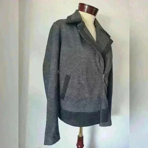 J Crew Size 8 Dark Charcoal Grey Black Wool Blend Moto Jacket Coat Pockets