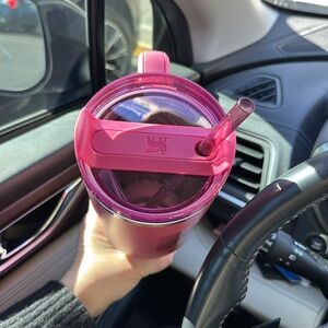 Bold pink tumbler with a convenient handle. Includes a straw for easy drinking. Ideal for travel and daily use. New with tags!