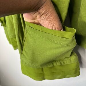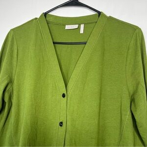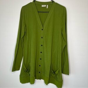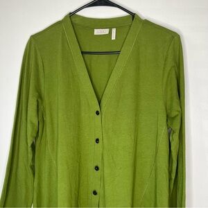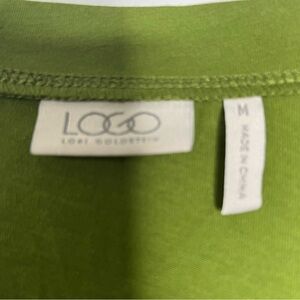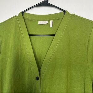 LOGO Lori Goldstein Green Button Front V Neck Tunic with Pockets and Tucks SZ M