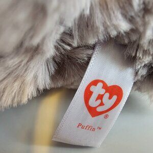 Pre-owned Ty Attic Treasures 'Puffin' the bunny rabbit plush stuffed animal. Measures approx. 8" long when lying flat. Hang & tush tags still attached. Marked 2017. Plush is in very good pre-owned condition. Coming from an adults collection.