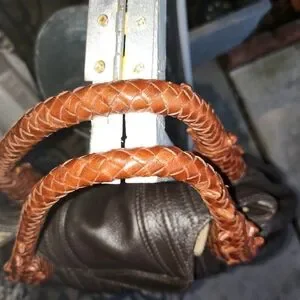 Chocolate leather with brown handles bag with flap over closure barely used ...in good condition