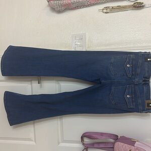 american eagle, low rise, size 6 regular flared jean.