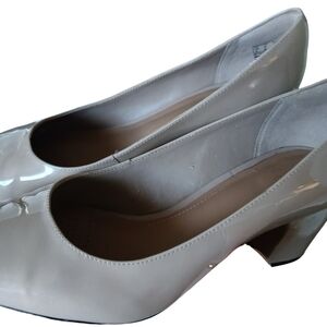 Clarks Beige Patent Leather Classic Point Toe Block Heel Size 8
