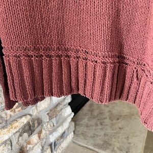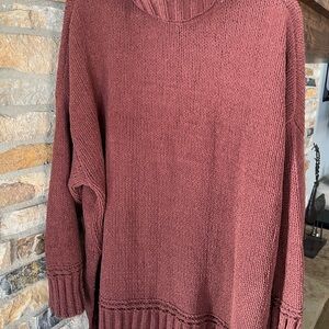 Cozy soft chenille like textured knit sweater. Band detail at bottom and cuffs. Oversized fit. Length is 30”.