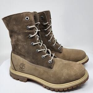 Timberland Teddy Fleece Fold Down Boots Women 7 Taupe Leather Waterproof